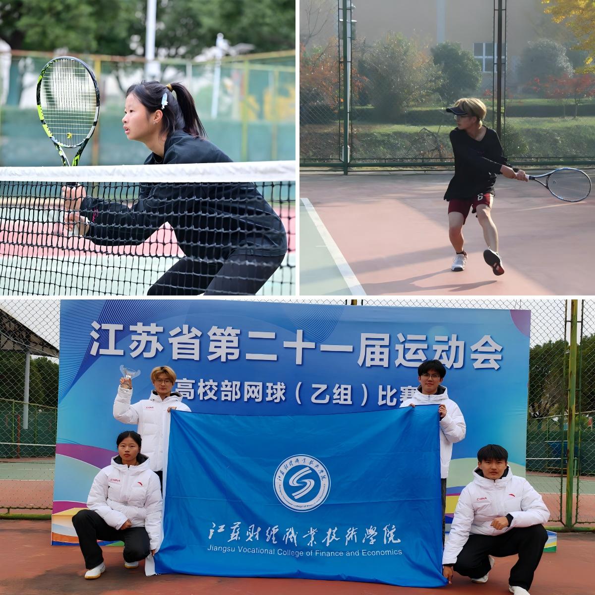 在11月12日至17日举行的江苏省第二十一届运动会高校部网球(乙组)比赛中,我校网球队奋勇拼搏,荣获男子团体赛与男子单打两项银牌,并取得混合双打第五名及团体总分第五名的历史最好成绩 向日葵视频官网。