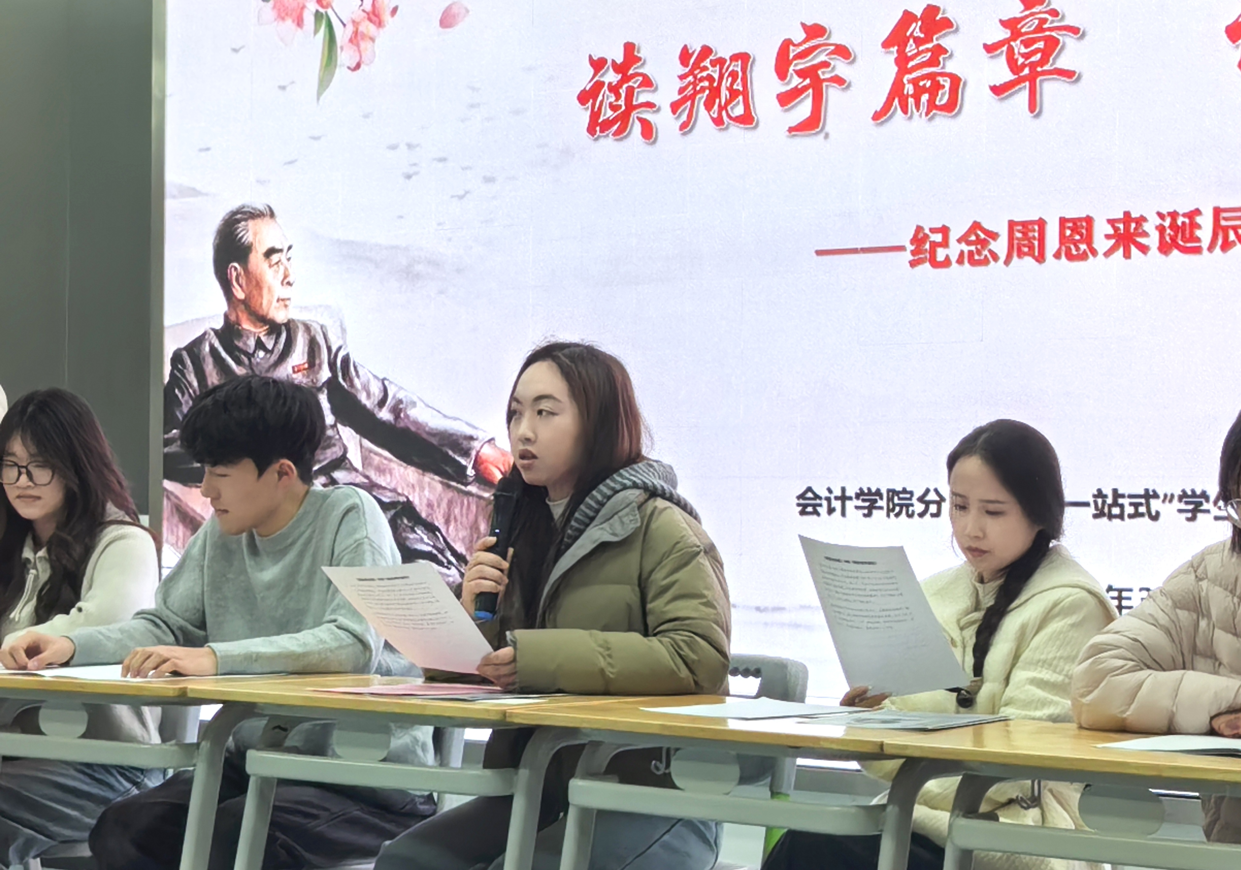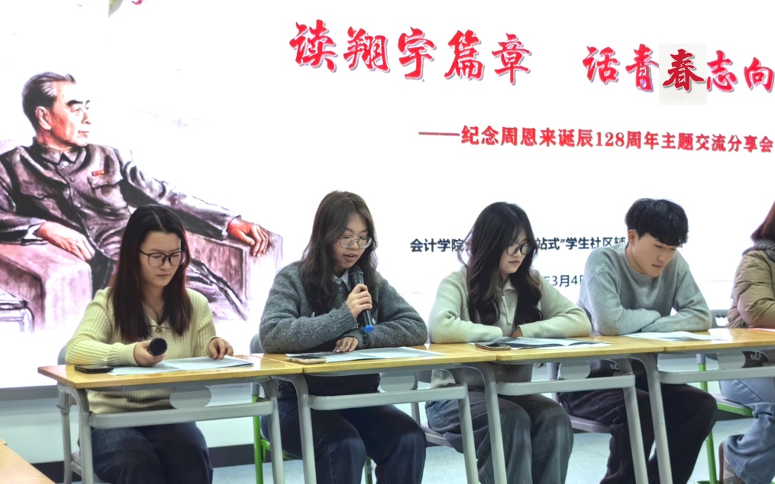 3月4日下午,在第128个周恩来诞辰纪念日来临之际,会计向日葵视频下载app分团委联合“一站式”学生社区辅导员工作站组织开展第二期寓见下午茶活动:“读翔宇篇章 话青春志向”纪念周恩来诞辰128周年主题交流分享会,60余名师生齐聚一堂,共同追思伟人风范 向日葵视频官网,感悟精神力量。