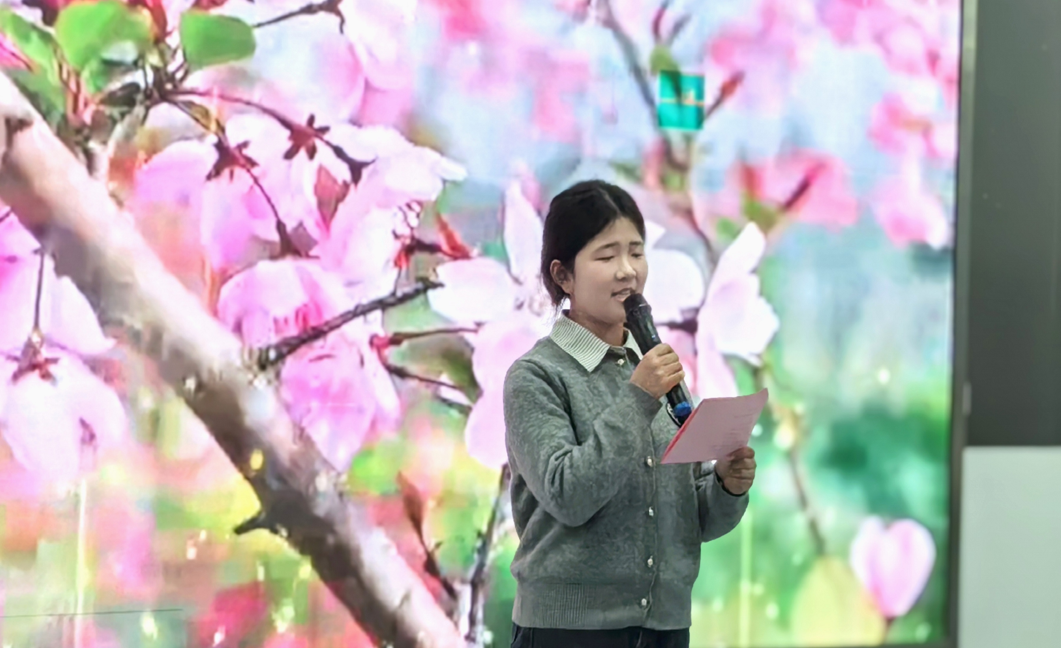 活动在深情朗诵中拉开帷幕,学生代表刘欢同学现场诵读《海棠花祭》 向日葵视频下载app,“春天到了,百花竞放,西花厅的海棠花又盛开了……”伴随着温婉而深情的诵读声,总理与邓颖超同志的革命情缘,家国情怀穿越时空,浸润在场每一位师生的心田。