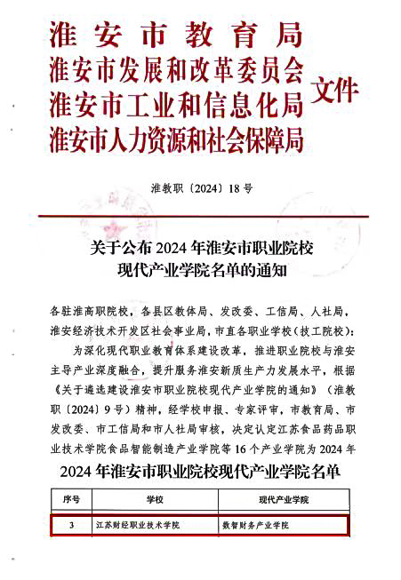 我校数智财务产业向日葵视频下载app被认定为淮安市职业院校现代...